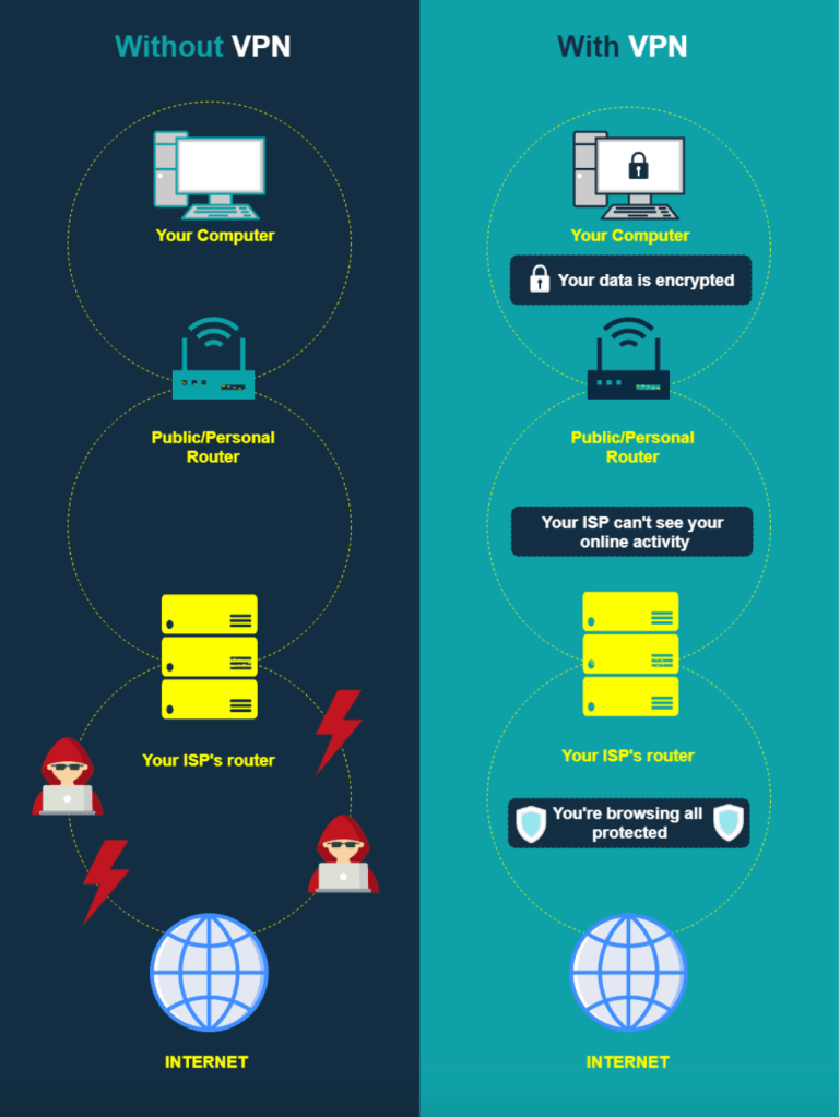 Surfing through the internet or transaction on an unsecured WiFi network mean you can be exposing your private information and browsing habit. Without VPN, your internet service provider can know your entire browsing history. By using a public WiFi network, your data are being transmitted during your online activities could be vulnerable and eavesdropping by stranger that are using the same network.